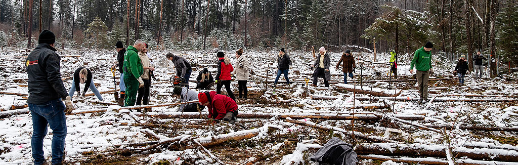 Die Fläche, auf der wir gepflanzt haben, war bislang ein reiner Fichtenbestand. Doch diese Baumart ist in Zeiten des Klimawandels besonders anfällig für Stürme, Trockenheit und Schädlinge. Unser Ziel war es deshalb, einen stabilen, naturnahen Mischwald zu schaffen – mit zwei Baumarten, die sich perfekt ergänzen:
