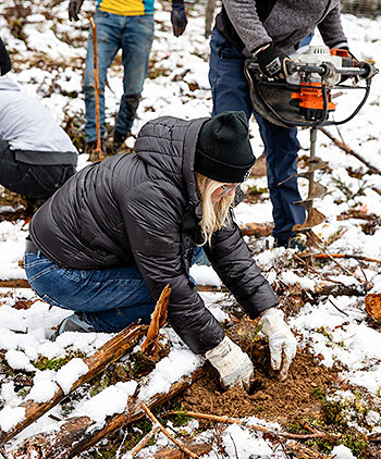 Die Pflanzaktion war ein unvergessliches Erlebnis. Nach der Begrüßung durch unseren Geschäftsführer Julian Kasprowic und einer kurzen Einführung durch die Fachleute von PLANT-MY-TREE® füllte sich die Fläche mit Leben: Mit Spaten, Handschuhen und vor allem mit viel Begeisterung setzten die Teilnehmerinnen und Teilnehmer die ersten jungen Bäume in die Erde.