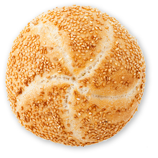 – 100 % Weizenmehl 550 – Weizen-Aromavorteig – Sesam – pflanzliche Margarine, Malzbackmittel – Salz, Hefe, Wasser